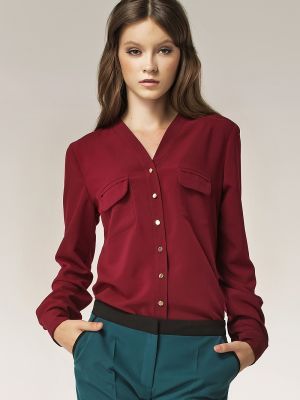 Bluzka o prostym koszulowym fasonie z kieszonkami. Zapinana na guziki z dekoltem V. Pasuje do każdej stylizacji.