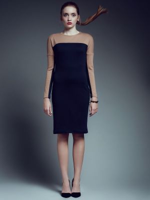 Prosta ołówkowa sukienka z dzianiny. Elastyczny materiał. Zapięta na kryty zamek. Długi rękaw.